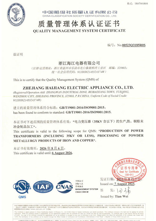 To ensure the stability, reliability, and traceability of product quality, our company adheres to a stringent quality management system. We have obtained the GB/T19001-2016/ISO9001:2015 Quality Management System Certification and are committed to its thorough implementation.