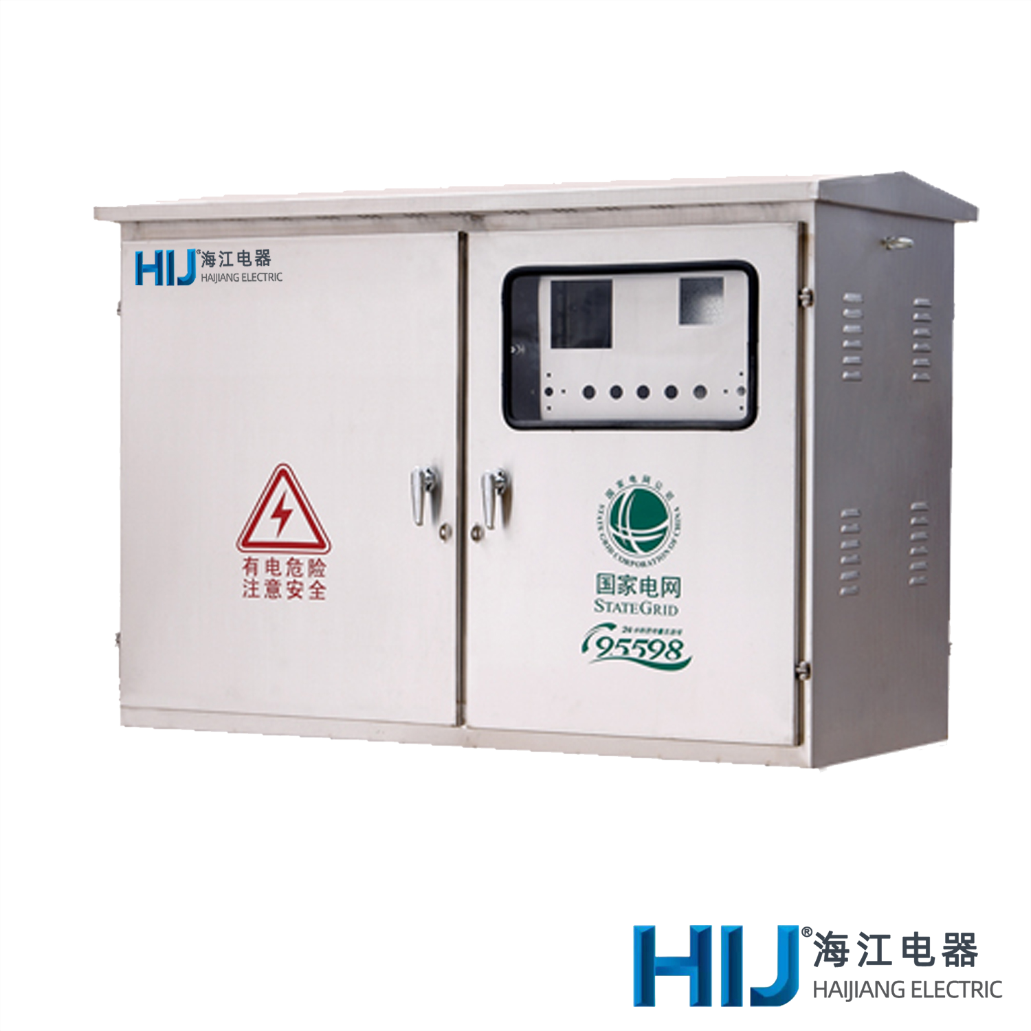 ● The box structure is available in both vertical and horizontal designs. The shell is made of 2mm high-quality stainless steel sheet, formed through multiple folding processes (or using stainless steel double-layer composite panels with honeycomb structure, offering features such as flame resistance, environmental friendliness, heat insulation, and anti-condensation). Special stainless steel welding techniques are employed, ensuring high overall strength and a mirror-like surface finish without visible weld seams. Internally, beams (plates) are treated with hot-dip galvanizing process to prevent corrosion for up to twenty years. The box features front and rear doors for easy user operation and maintenance, with high resilience and aging-resistant sealing strips surrounding the doors. Each door is equipped with both bright and dark locks, with the bright locks featuring rainproof covers to prevent blockage and rust. The metering room is fully enclosed with a lead sealing device. The box's side is equipped with cable conduits for rain and foreign object protection, while the bottom has ventilation holes and cable outlet holes, and the top has ventilation ducts and wire mesh. It offers functions such as waterproofing, rust prevention, dust prevention, and foreign object prevention, with a protection rating of IP54.