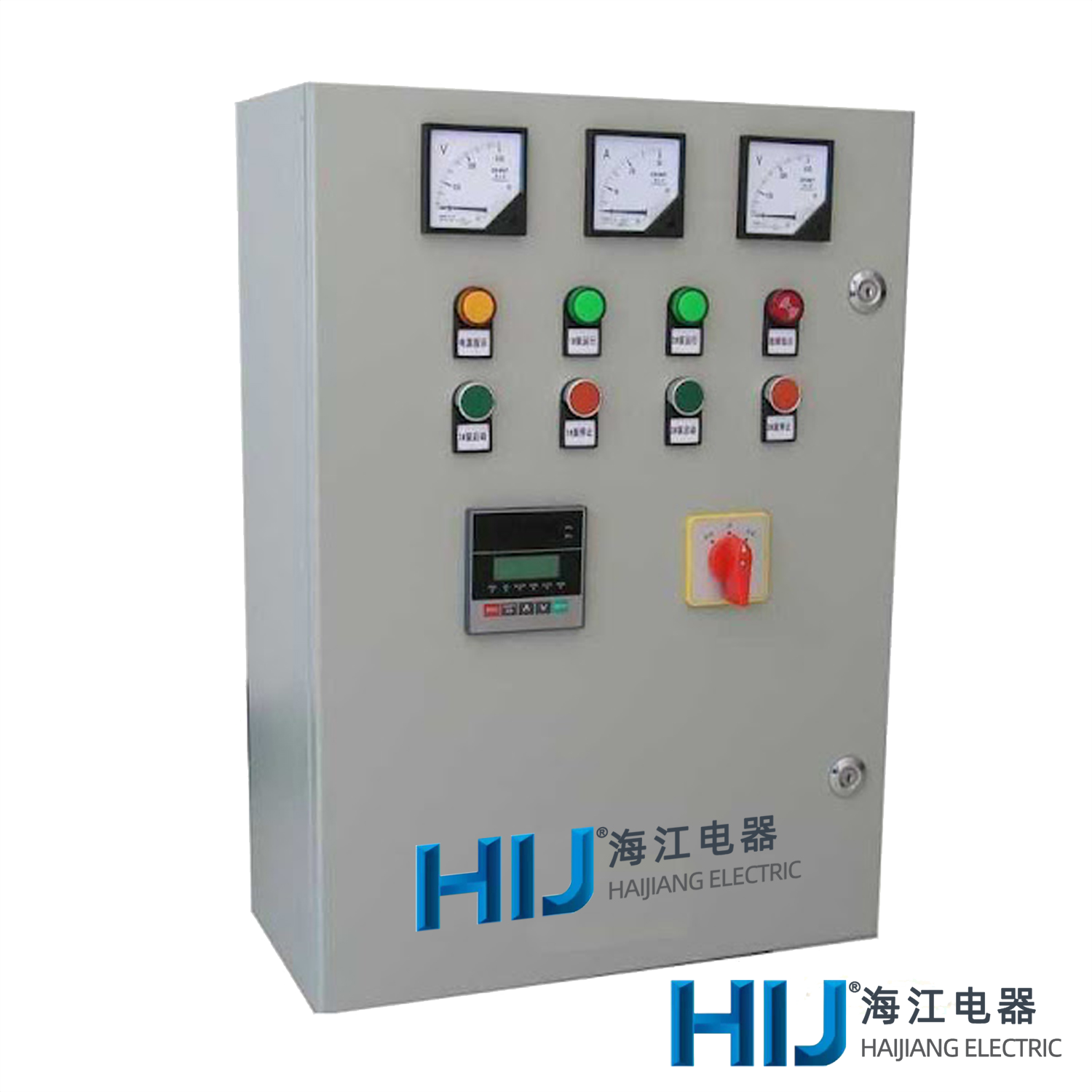 ● The structure is welded from thin steel plates, and measuring instruments, button indicator lights, and control switches can be mounted on the door. Other electrical equipment such as contactors, relays, and terminal boards should be installed on the internal frame of the box. Knockout holes are punched in the upper and lower walls of the box to facilitate the installation of various specifications of cable conduits.